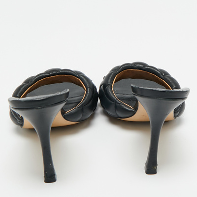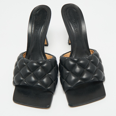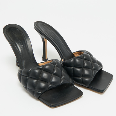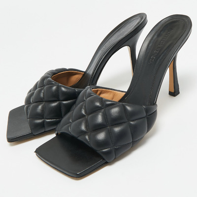 Bottega Veneta Black Leather Lido Slide Sandals Size 39.5 1219592 (чёрный, lpn30982894)