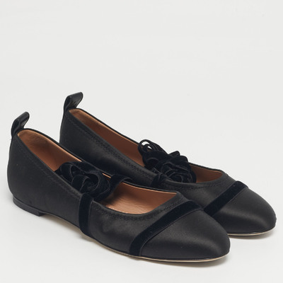 Malone Souliers Black Satin Spncer Ankle Wrap Ballet Flats Size 40 1218769 (чёрный, lpn30983020)