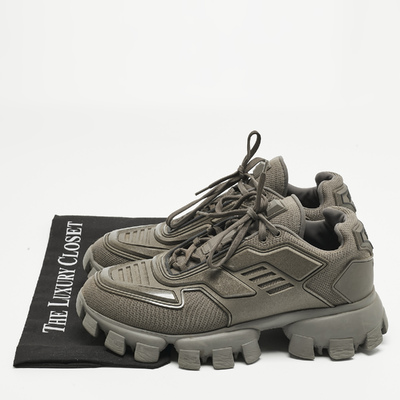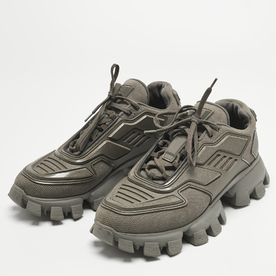 These Prada Cloudbust sneakers combine green mesh and rubber for a sporty look. Designed for both comfort and style, they add a modern silhouette to streetwear or casual ensembles.