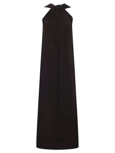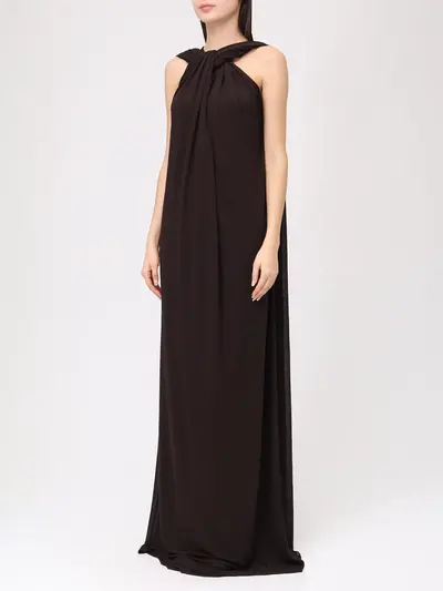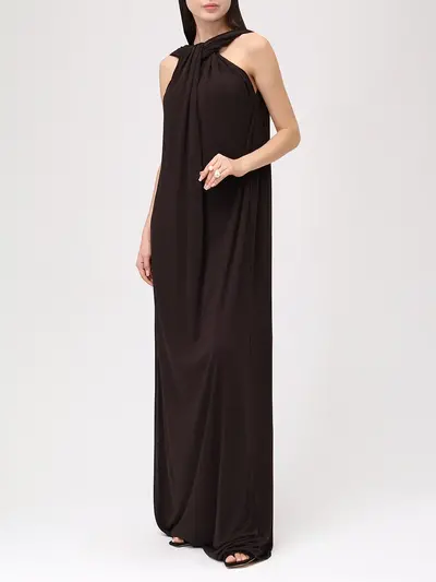 -Коричневое платье-макси из легкого вискозного джерси от JIL SANDER.