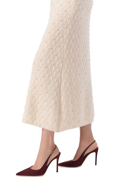 Туфли Ribbon Sling с фирменной пряжкой на ремешке изготовили из замши. Слингбэки с зауженным мысом установили на высокую шпильку.