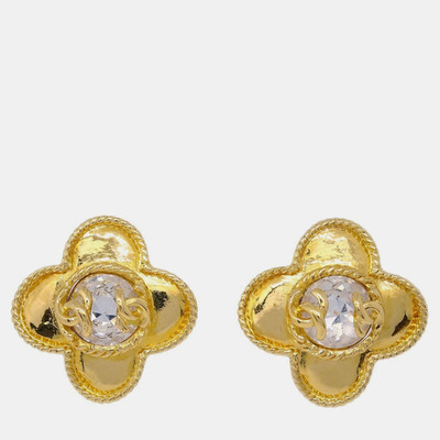 Chanel Cross Earrings Clip-On Rhinestone Gold 95A 1220683 (lpn30987457)