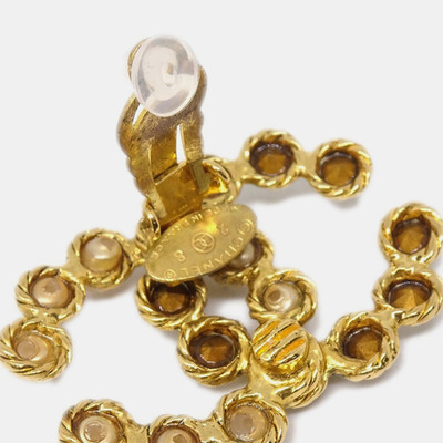 Chanel Gold CC Earrings Clip-On Rhinestone Artificial Pearl 28 1220692 (lpn30987473)