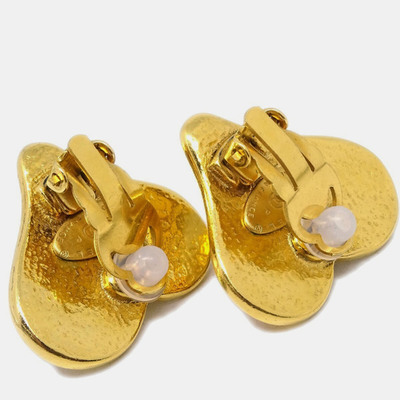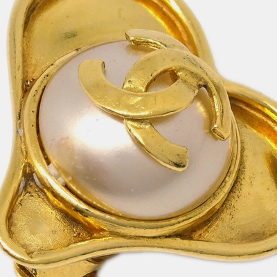 Chanel Gold Heart Earrings Clip-On Artificial Pearl 95P 1220672 (lpn30987489)