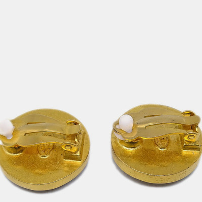 Chanel Button Acrylic Earrings Clip-On Brown Gold 95A 1220671 (коричневый, lpn30987490)
