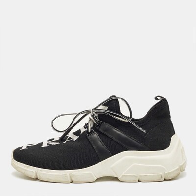 Prada Black Knit Fabric and Leather Lace Up Sneakers Size 35 1220366 (чёрный, lpn30987583)