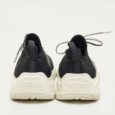 Prada Black Knit Fabric and Leather Lace Up Sneakers Size 35 1220366 - 1
