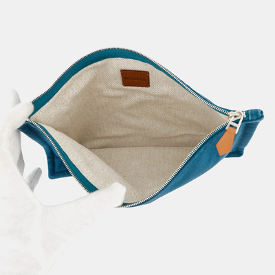Made from pure cotton, this blue Hermès Velocipedist pouch brings together softness and subtle charm. Lightweight and easy to carry, it works well for everyday use or travel organization.