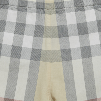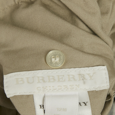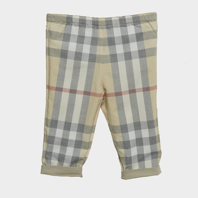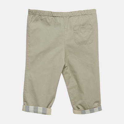 A mini classic, these Burberry cotton pants are designed in beige with the house’s signature check lining. The roll up cuffs reveal the iconic pattern, adding timeless charm to a staple piece.