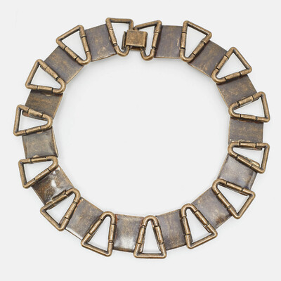 Etro’s choker necklace is crafted from resin with an antique gold tone finish. Its sculptural form reflects the label’s bohemian luxury aesthetic. This distinctive piece stands out in searches for Etro statement chokers.