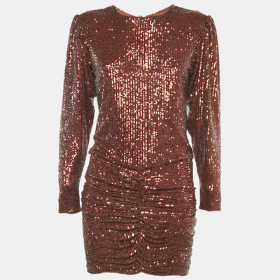 The Flynn mini dress by Retrofête catches the light like amber in motion, sequins shimmering across the fabric and gathering subtly around the ruching. With heels and a confident stride, the evening opens up—every laugh, every toast, feels like it was waiting for this dress.