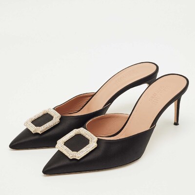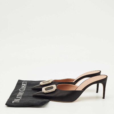 Malone Souliers Black Satin Mona Mules Size 40 1218406 (чёрный, lpn30987910)