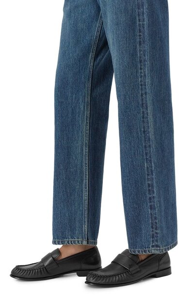 Лоферы Ellis с драпированным мысом выполнили из мягкой кожи. Пару на низком наборном каблуке украсили эмблемой JC в тон на перемычке.
