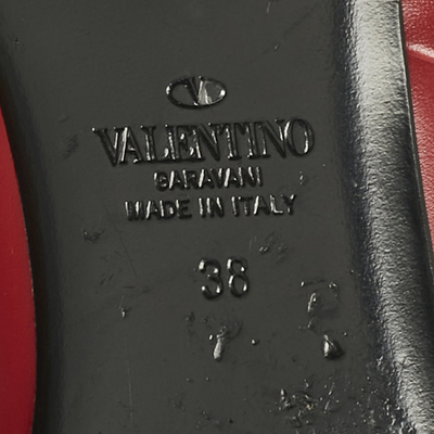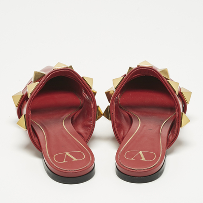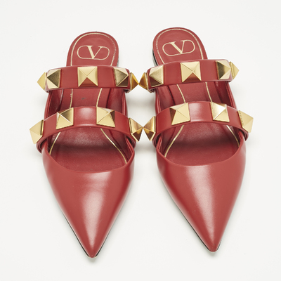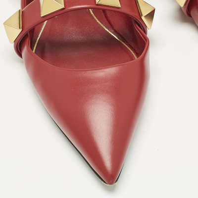 Valentino shoes are known for their unique designs that emanate the labels feminine verve and immaculate craftsmanship that makes their creations last season after season. Crafted from leather in a versatile burgundy shade, the straps are adorned with the Roman Studs, a maximized version of Rockstud.