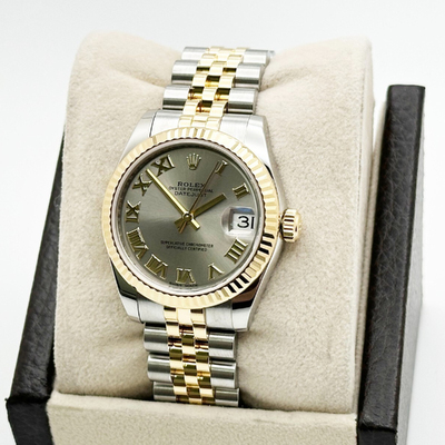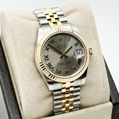 Elevate your wristwear with this Rolex Datejust, adorned with silver diamonds and a sleek stainless steel and 18k white gold finish. Automatic movement ensures impeccable accuracy. A luxurious statement piece that merges sparkle with iconic craftsmanship.