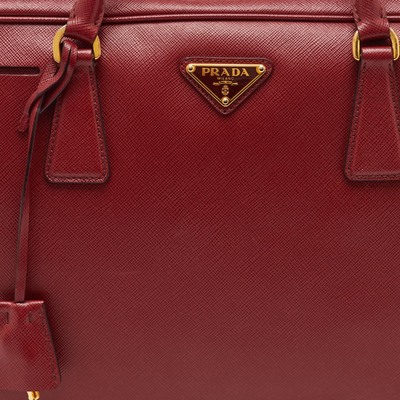 A timeless Prada silhouette in durable Saffiano leather, this Bauletto bag brings bold red charm with everyday practicality. The structured finish along with top zip closure make it both stylish and functional.