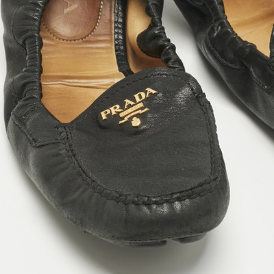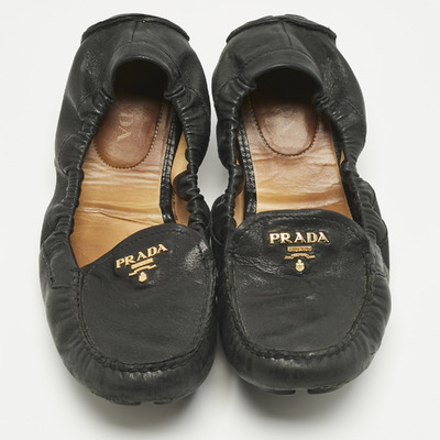 This pair of scrunch loafers by Prada will complete any look. Crafted from black leather, they feature the brand detailing positioned on the top in gold tone. Slip them on and let every outfit feel instantly luxe.