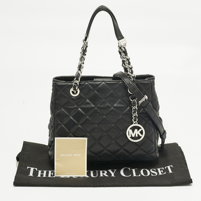 Michael Kors’ Susannah tote brings modern polish to your wardrobe. Made from black quilted leather with top handles and a shoulder strap, it can be carried around effortlessly, making it a versatile carryall for workdays and weekends.