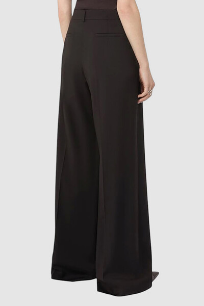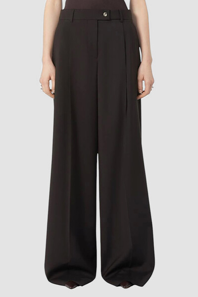 Брюки из линейки Max Mara Sportmax — это выбор современной и уверенной в себе женщины. Для изготовления изделия свободного силуэта используется лёгкое шерстяное полотно тёмно-коричневого цвета, обеспечивающее абсолютный комфорт. Дизайн широкой модели завершают классические стрелки и защипы в верхней части.