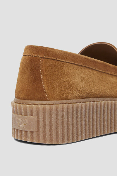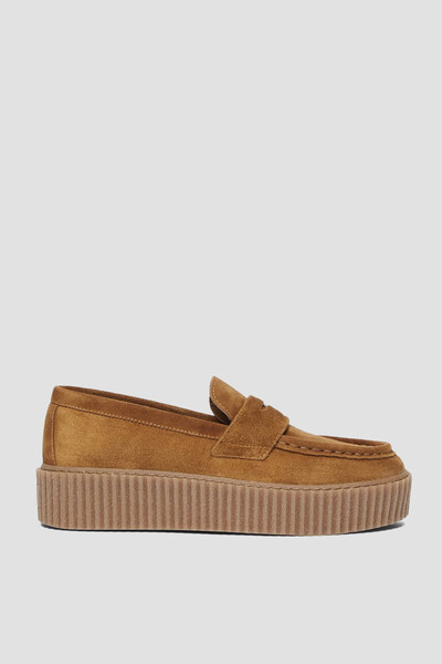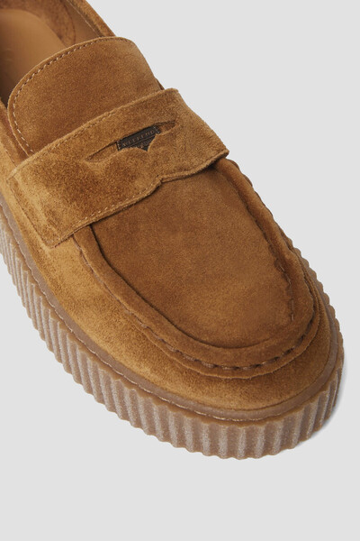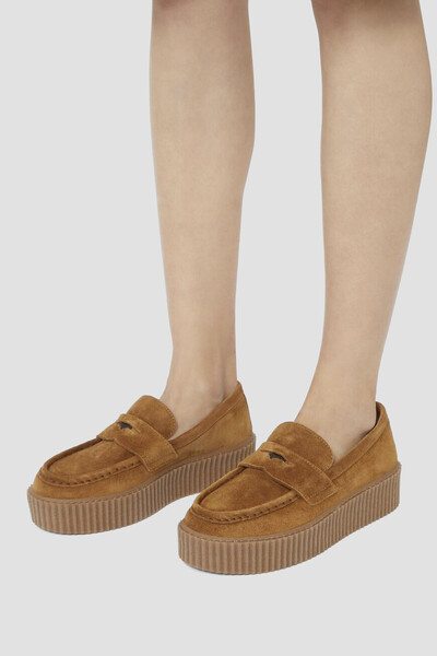 Лоферы Max Mara глубокого коричневого оттенка станут элегантным акцентом базового гардероба. Мягкая замша с характерной фактурой и аккуратная перемычка в стиле penny-loafer создают утончённый образ с лёгким намёком на классику. Внутренняя кожаная отделка отвечает за комфорт при носке, а широкая резиновая подошва обеспечивает устойчивость и современное звучание модели.