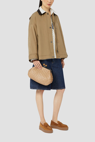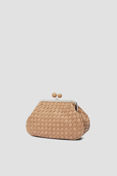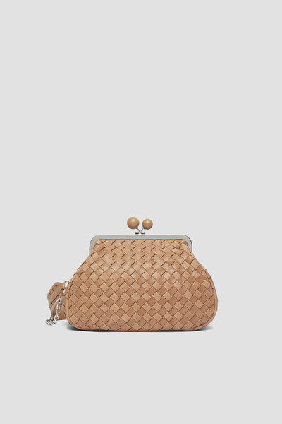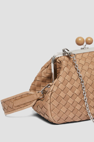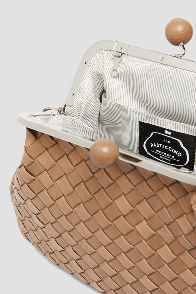 Сумка Pasticcino среднего размера от бренда Max Mara легко впишется в современный ритм жизни. Особая плетёная текстура и структурированный силуэт создают изысканный акцент, а детали придают изделию особый шарм. Внутри – подкладка из фирменной полосатой ткани и накладной карман с брендовой этикеткой для мелочей. Для удобства предусмотрены два варианта ремней: короткий плетёный кожаный и длинный металлический с наплечником. Оба ремня съёмные, фиксируются сбоку и сверху, позволяя носить сумку так, как удобно именно вам. Фирменное металлическое крепление с декоративными сферами «под дерево» завершает дизайн, подчёркивая характерный стиль бренда.