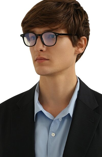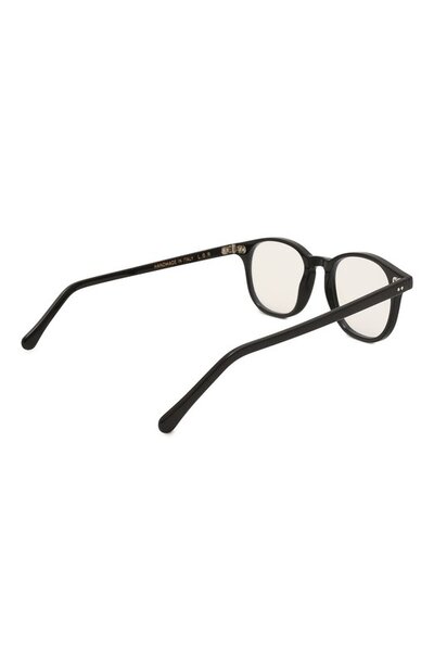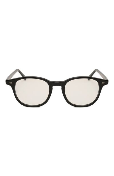 Черная оправа получилась предельно лаконичной. Такая модель гармонично дополнит как повседневный, так и деловой образ. Для изготовления аксессуара мастера марки использовали легкий прочный ацетат. Изделие деликатно украсили миниатюрными серебристыми заклепками.