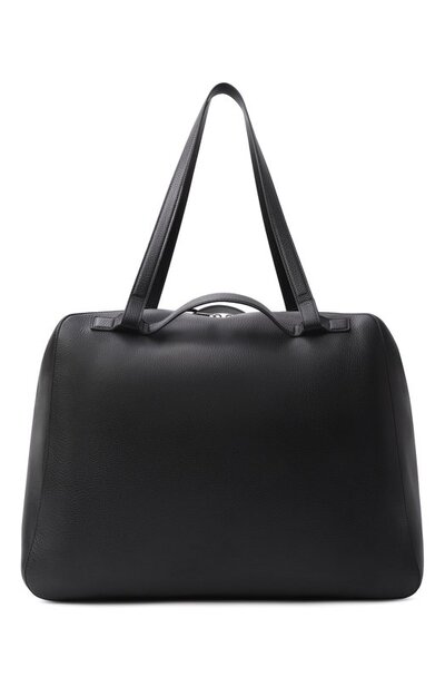 Сумку Nelson с двумя парами ручек разной длины выполнили из зернистой телячьей кожи. Аксессуар с внутренними плоским карманом и слотом для карт застегивается встречной молнией.