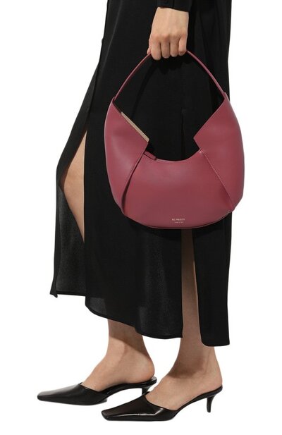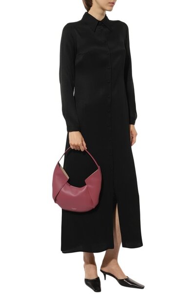 Эту небольшую версию сумки Riva мастера марки выполнили из гладкой мягкой кожи оттенка ягодного сорбета. Модель с универсальной удлиненной ручкой декорировали на передней панели миниатюрной золотистой эмблемой. В аксессуар, закрывающийся молнией сверху, поместятся кошелек, смартфон и паспорт.