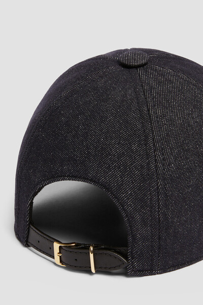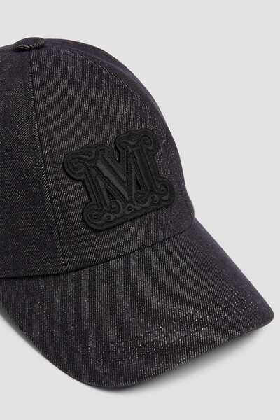 Джинсовая бейсболка тёмно-синего цвета от Max Mara. Модель из чистого хлопкового денима отличается традиционной формой шестиклинки. Объём изделия регулируется кожаным ремешком с пряжкой из металла светло-золотого оттенка в задней части. Принадлежность аксессуара Дому обозначена крупной нашивкой с вышитой дизайнерской монограммой «M» на тулье.