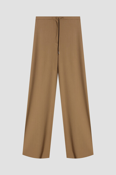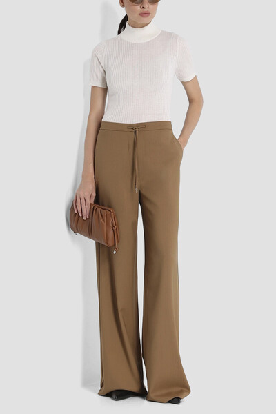 Широкие брюки Max Mara орехового оттенка сочетают в себе комфорт и элегантность. Изделие из мягкой 100% шерсти комфортно садится по фигуре благодаря эластичному поясу. Боковые карманы делают модель практичной, а благородный цвет легко комбинируется с нейтральной палитрой и яркими акцентами.