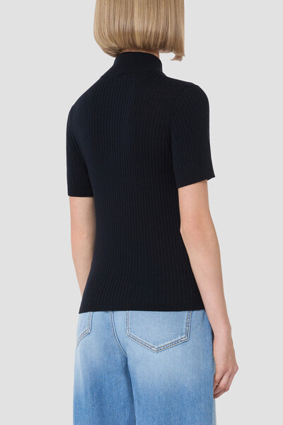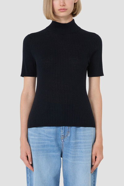 Джемпер Max Mara выполнен из тонкой смесовой пряжи шёлка и шерсти. Модель отличается мягкой фактурой с лёгким благородным блеском и комфортной посадкой. Высокий рифлёный ворот, короткие рукава и лаконичный силуэт делают джемпер универсальной основой для многослойных образов и акцентных комбинаций.
