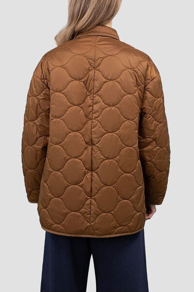 Коричневая стёганая куртка Max Mara с узорчатой прострочкой. Модель прямого слегка свободного кроя с классическим отложным воротником и застёжкой на пуговицы сшита из износостойкого материала, хорошо защищающего от ветра. Базовая модель в трендовом оттенке впишется как в спортивный, так и в более сдержанный casual-стиль.