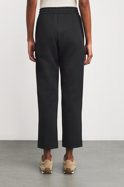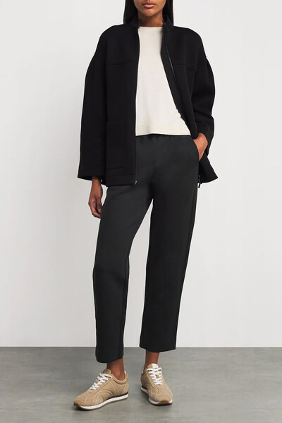 Трикотажные брюки Max Mara станут синонимом комфорта в вашем гардеробе. Модель сшита из мягкого джерси на основе хлопка. Свободный прямой крой с укороченными штанинами подчёркивает современный стиль, а эластичный пояс со шнурком обеспечивает комфортную посадку. Базовые брюки удачно смотрятся как со спортивным худи, так и с более сдержанным лонгсливом.