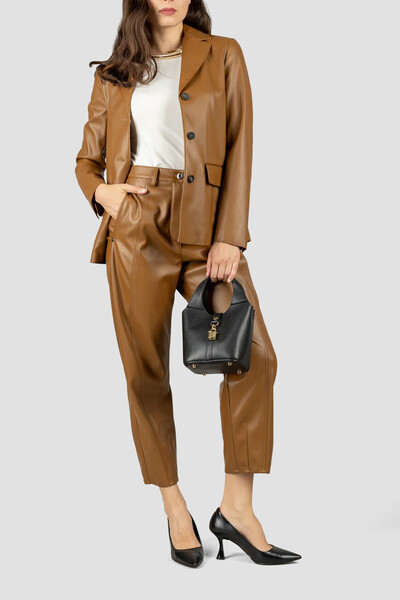 Эффектные брюки Max Mara из эко-кожи коричневого цвета – смелый союз современного стиля и утончённой итальянской элегантности. Их силуэт в стиле baggy с лёгким сужением к щиколотке создаёт эффект свободы и динамики, подчёркивая индивидуальность образа. Мягкий материал повторяет движения тела, придавая каждой посадке роскошную пластичность.