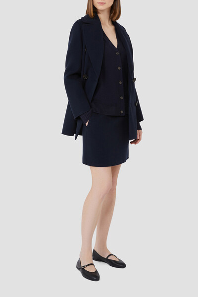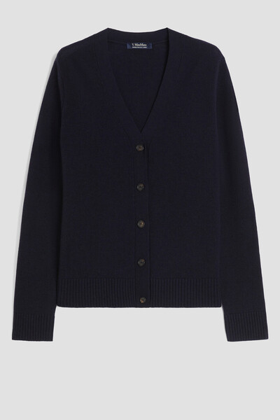 Тёмно-синий кардиган от Max Mara из мягкой шерстяной пряжи. Утончённость силуэта подчеркивает отсуствие утяжеляющего декора и принтов на лицевой стороне. Современности и динамичности изделию добавляют нашивки-заплатки на локтях с названием бренда контрастного песочного оттенка. Кардиган подойдёт как для ежедневной носки в неформальных образах, так и в более строгих сочетаниях.