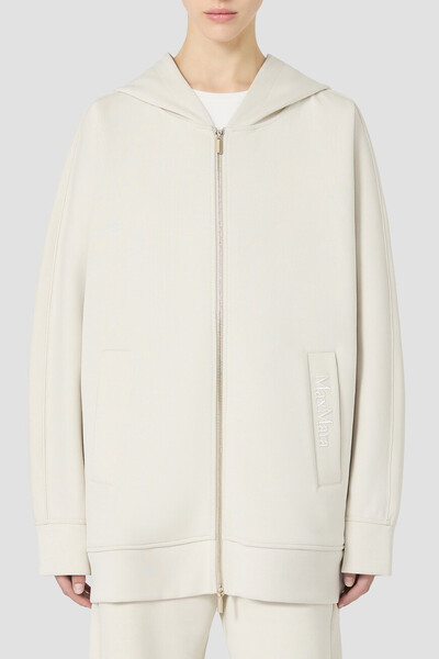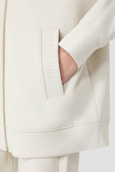 Трикотажная куртка от Max Mara в нежном оттенке ivory сочетает элегантность и функциональность. Прямой силуэт с лаконичными линиями подчёркивает современный минимализм, а мягкий хлопковый джерси обеспечивает комфорт и лёгкость в носке. О принадлежности к Дому деликатно напоминает вышивка с названием бренда на левом кармане. Куртка составит идеальный комплект с брюками из той же коллекции.