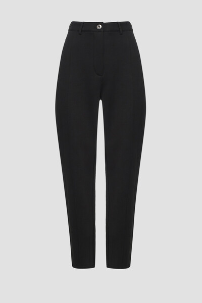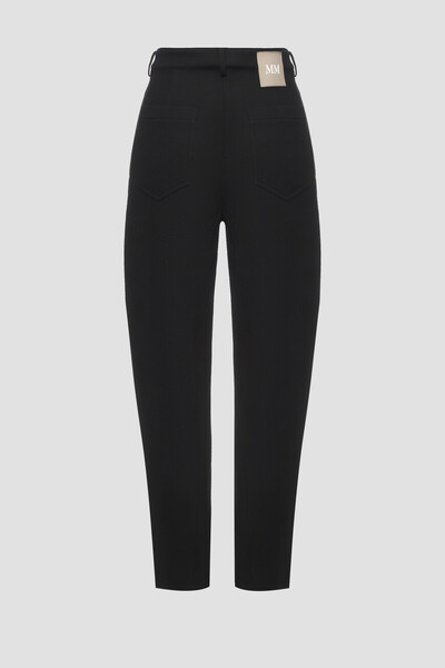 Чёрные брюки от бренда Max Mara в стиле buggy. Выполненные из мягкого смесового хлопка, они мягко повторяют линии фигуры, а особый крой делает талию визуально стройнее. Строгие линии и аккуратная посадка делают модель идеальным выбор для элегантного повседневного образа или офисного ансамбля. О принадлежности к Дому деликатно намекнёт нашивка-патч на поясе сзади.