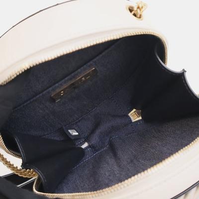 This round Chanel shoulder bag is crafted from crumpled calfskin leather for a relaxed yet structured shape. Compact and easy to wear, it features a zip closure and an adjustable strap for crossbody or shoulder use.