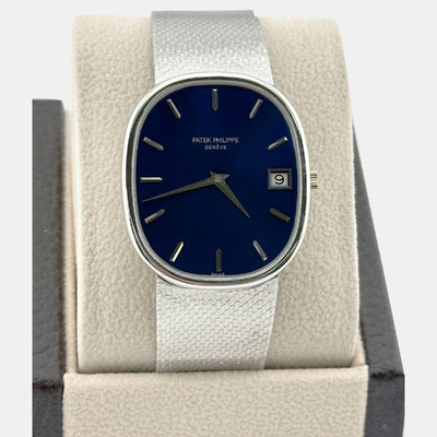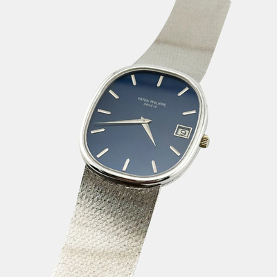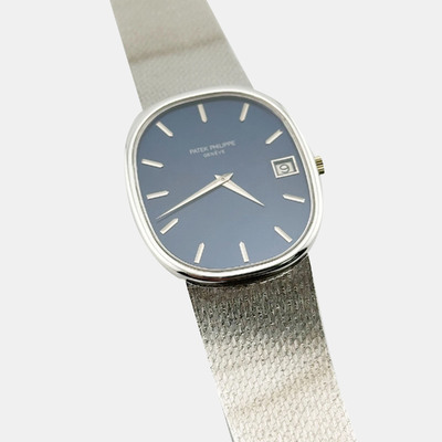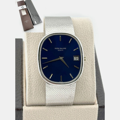 Patek Philippe Ellipse Jumbo 3605 Automatic Blue 18K White Gold Men's Wristwatch 33 mm 1222430 (голубой, lpn31004369)