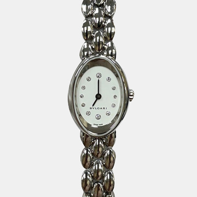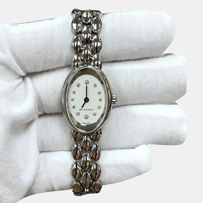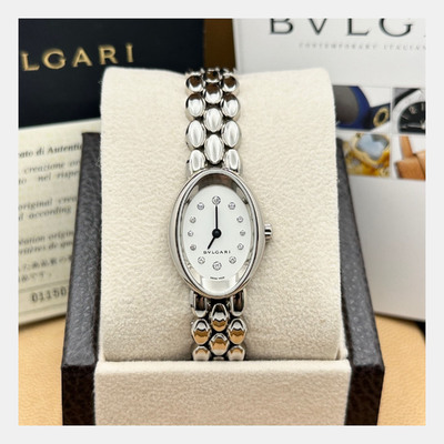 This authentic Bvlgari Ovale OVW27G Quartz Diamond 18K White Gold Womens Wristwatch 27 mm is an exquisite pre owned designer timepiece that embodies Bvlgari’s signature elegance and craftsmanship. Featuring a 27 mm 18K white gold case adorned with diamonds, it exudes refined luxury and timeless style. Offered as a pre loved luxury watch, it reflects authentic Bvlgari artistry, making it a distinguished choice for collectors or anyone seeking a sophisticated statement wristwatch.