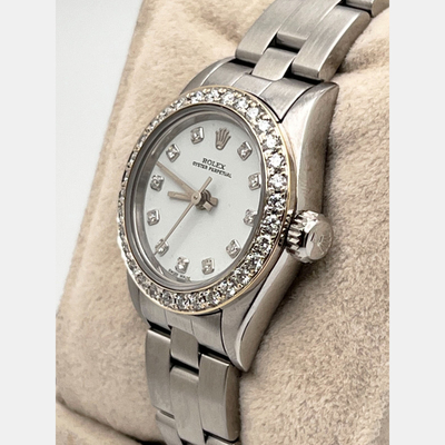 Rolex Oyster Perpetual 67194 Automatic Diamond and Stainless Steel Women's Wristwatch 26 mm 1221927 (белый, lpn31004416)