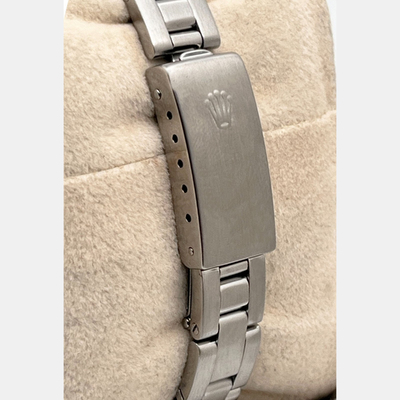 Minimalist yet luxurious, the Oyster Perpetual 67194 sparkles with diamond accents on a sleek stainless steel canvas. Its 26 mm case and smooth automatic movement create a perfect blend of modern refinement and classic Rolex heritage.