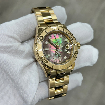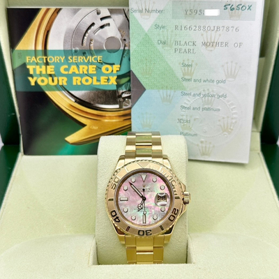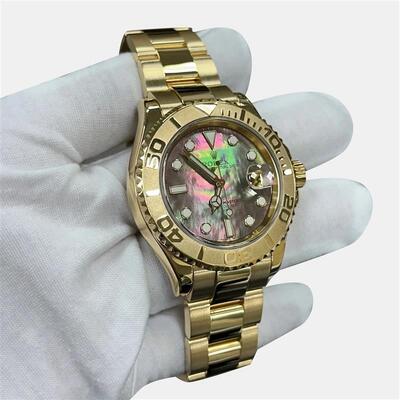 Bold and unapologetically refined, the Rolex Yacht Master 16628 is a statement of presence on both land and open water. Crafted in opulent 18K yellow gold, its commanding black dial brings contrast and clarity to a watch built for connoisseurs of sport and sophistication alike. This 40mm timepiece channels nautical prestige with a modern edge—where luxury meets function, effortlessly.