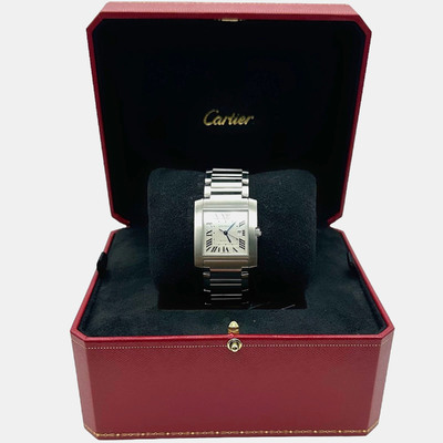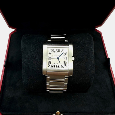 This authentic Cartier Tank Francaise WSTA0067 Automatic Silver Roman Stainless Steel Unisex Wristwatch 36.7 mm x 30.5 mm is a timeless pre owned designer timepiece that embodies Cartier’s iconic elegance. Featuring a stainless steel case with a classic silver Roman dial, it offers a refined and versatile presence suitable for both men and women. Presented as a pre loved luxury watch, it showcases authentic Cartier craftsmanship, making it an exceptional choice for collectors or anyone seeking a sophisticated unisex statement wristwatch.