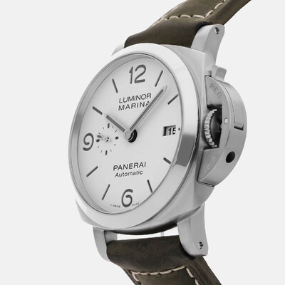 A commanding presence on the wrist, the Panerai Luminor Marina PAM 1314 fuses robust design with precision Swiss craftsmanship. Its 44 mm automatic case showcases the signature Luminor crown guard and clean, legible dial, epitomizing Panerai’s heritage of functional elegance. Bold yet versatile, this timepiece is a statement of contemporary style and enduring horological excellence.