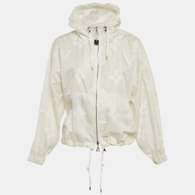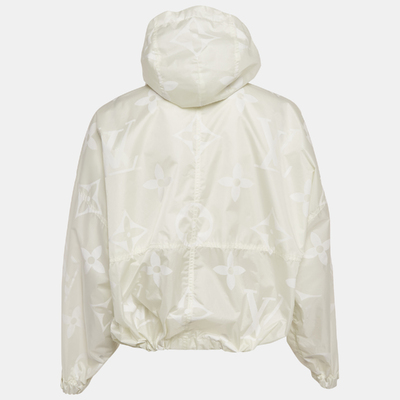Think of the cool hush of an airport lounge just before boarding — that’s the mood of Louis Vuitton’s off white monogram blouson. Cut from lightweight synthetic with a relaxed fit, it lends the maison’s polish to an easy, throw on jacket for travel or street.