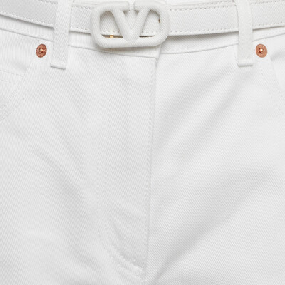 A flash of coastal air, hair pulled back, a belt cinched high: these Valentino denim shorts bring the easy structure of tailoring to warm weather dressing. Cut with clean lines and a self tie waist, they move from seaside lunches to city errands, a foundation piece for looks that still feel considered.