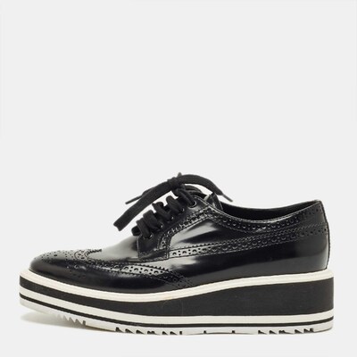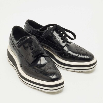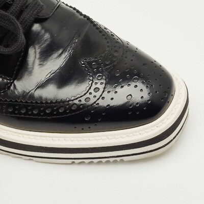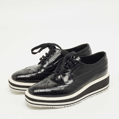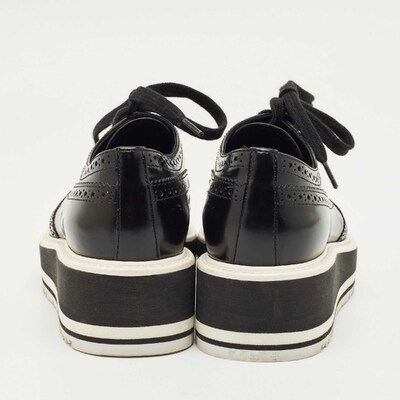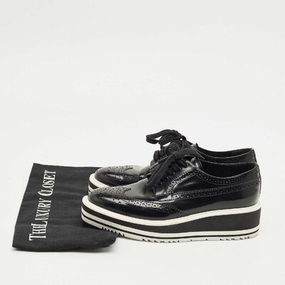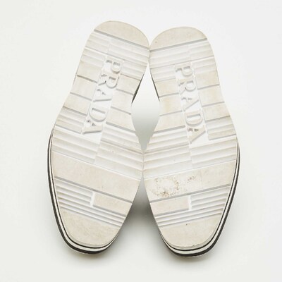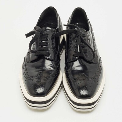 Prada takes the classic derby and reimagines it with sneaker comfort in smooth black leather. The lace up design offers versatility, making them suitable for both casual and slightly dressier pairings.