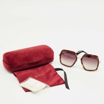 These Gucci oversized sunglasses feature brown gradient lenses with a bold, fashion forward frame. Designed for maximum impact, they combine glamour with UV protection. A perfect statement accessory.