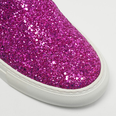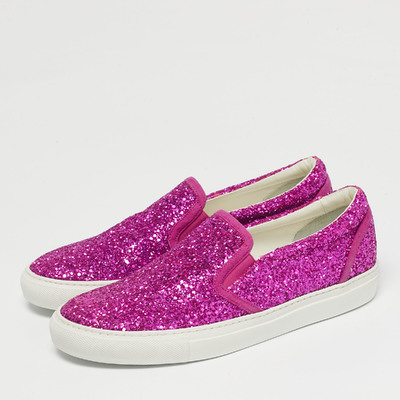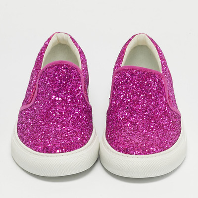These slip on sneakers shine with pink glitter all over. Designed for those who love glamour in their everyday style, they bring sparkle to even the most casual moments.